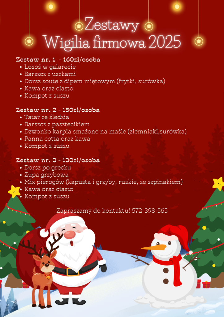 Uprzejmie informujemy, iż z dniem 01.04.2024r. cena szwedzkiego stołu wynosi 80,00/osobę.